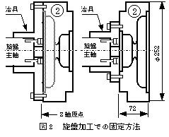 ワークの固定には,チャッキングによる変形を極力少なくするため,図2に示したような治具を用いた.旋盤の主軸に治具を取り付け,治具の端面の加工を行った後にワークをボルトで固定した.この方法にて0.1mmの仕上げ代を残して超硬バイトでNC加工を行った.