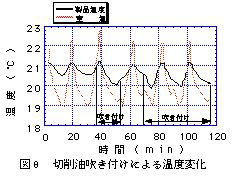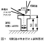 本加工では,加工時に切削油(ケロシン)をミスト状にして吹き付けるため,気化熱等により加工物の温度が低下する.そこで,図7に示したように切削油を試料に吹き付けた場合の温度変化を調べた.