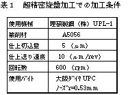 ダイヤモンドバイトを用いた仕上げ加工条件を表1に示した.ワークの固定方法は荒加工と同じである.