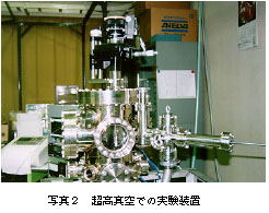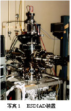 Stimulated Desorption Ion Angular Distribution)装置を写真1に示した。この装置は、分子が吸着した金属表面に電子線を照射し、イオン化した分子等を脱離させ、これらの脱離種の角度分布を計測することで、吸着構造等の情報を得ることができる。例えば、試料基板に物質を吸着させた場合、吸着角度と熱による振動等を解明することができる。