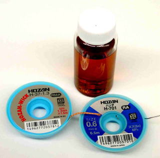 実習で使用するハンダ、ハンダ吸取り網線、フラックスは提供します